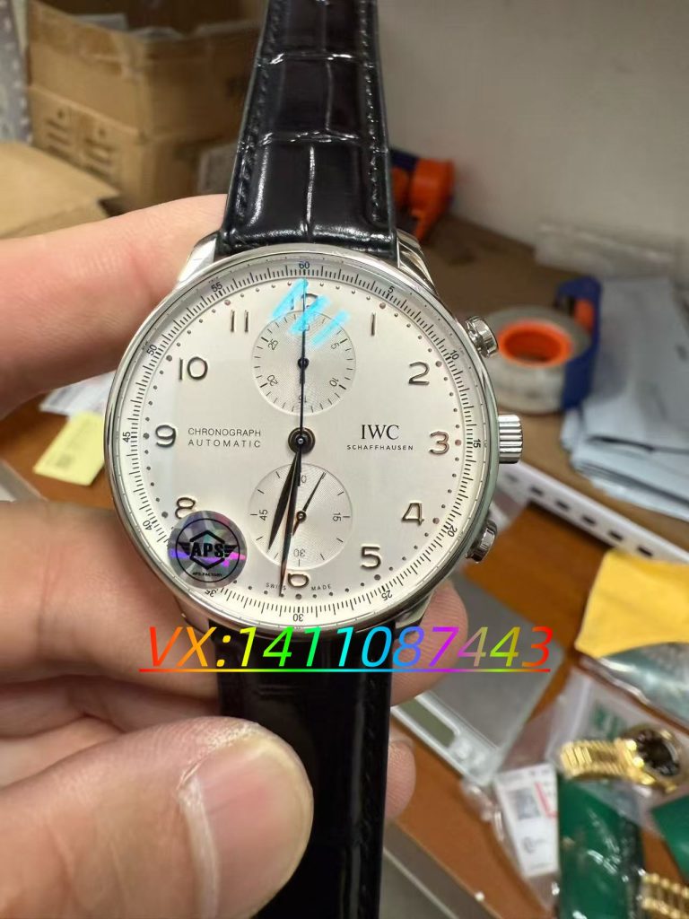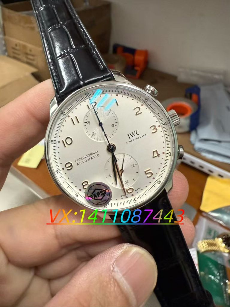 ZF 廠葡萄牙系列 IW371605 復刻腕表的表盤設計與正品同步,簡約之中,功能配備卻十分完善。阿拉伯數字時標搭配纖細葉形指針,精致的金銀絲工藝邊框環繞四周。表殼外圈印有四分之一秒刻度,既能準確讀取累計計時時刻,又賦予了這款經典時計動感與優雅的靈魂。